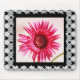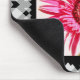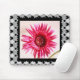 Cojín de ratón floral alegre. La margarita rosada del gerbera en una guinga negra y blanca comprobó el fondo.