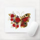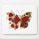 Alfombrilla De Ratón Mariposa de flor roja con rosas rojas