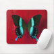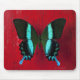 Alfombrilla De Ratón Mariposa negra y azul en la pared roja