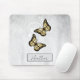 Agregue un toque elegante al área de trabajo de su equipo con una almohadilla de ratón personalizada Brilliant Gold Butterflies. El diseño de la almohadilla del ratón presenta mariposas brillantes que descansan sobre una vina floral blanca sobre un fondo gris. También hay artículos adicionales disponibles con este diseño.