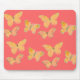 Un mousepad rosa bonito, decorado con mariposas naranjas/rosas.