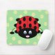 Este mousepad del dibujo animado ofrece una mariquita roja linda contra un fondo verde con las flores amarillas. Usted puede modificar fácilmente el color de fondo para requisitos particulares del mousepad o quitar el estampado de plores si usted tiene gusto. Una idea del bonito regalo para los amantes del animal y de naturaleza.