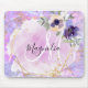 Almohadilla para ratones de moda y gitano con un arco iris de mármol violeta, un marco floral dorado con flores azules y melocotones y un fondo rosa de color rosa. Su nombre personalizado y su monograma están escritos en un guión elegante con letras a mano. Puede cambiar el color del texto y el estilo y el tamaño del tipo de letra mediante la opción personalizar.