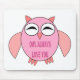Este mousepad tiene un personalizado adorable de un búho rosa con ojos adormilados, un pequeño pico y unos pies lindos. Hay un texto rosa brillante dentro de la panza de búho que dice: "Lechuza siempre te ama". Este es el regalo perfecto para mostrarle a alguien especial cuánto le amas.