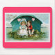 Vintage ilustracion de San Valentín victoriano con el saludo: "Mi corazón late cálido, tan cálido como puede ser, y esto es por amarte".