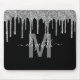 Alfombrilla De Ratón Moda Purpurina de goteo plateado Monograma Nombre