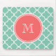 Alfombrilla De Ratón Modelo de Quatrefoil de la verde menta, monograma
