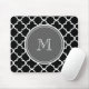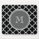 Alfombrilla De Ratón Modelo negro de Quatrefoil, monograma gris