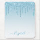 Moderno y elegante almohadilla de ratón Purpurina azul claro de moda y moda personalizada con su nombre. Guión elegante.