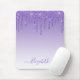 Moderna y elegante almohadilla de ratón Purpurina violeta de moda y moda personalizada con su nombre. Guión elegante.