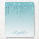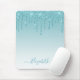 Moderna y elegante almohadilla de ratón Purpurina Aqua Blue, de moda y de moda, personalizada con su nombre. Guión elegante. Purpurina con chispas.