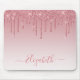 Moderno y elegante modas de Purpurina rosa rosado de moda y a la moda almohadilla de ratón personalizada con su nombre. Guión elegante. Purpurina con chispas.