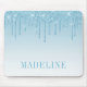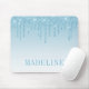 Almohadilla de ratón de Glitter Azul Claro Moderna Elegante y de Moda personalizada con tu nombre. Glitter que gotea con destellos.