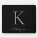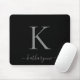 Moderno y elegante guión de Monograma plateado sobre una almohadilla de ratón negro de moda. Fácil de personalizar con su propio nombre y detalles. Ideal para un estilo de vida minimalista y lujoso. Póngase en contacto con nosotros en cedarandstring@gmail.com si necesita ayuda con el diseño o productos de coincidencia.