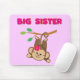 Un mono lindo con una flor rosa balanceándose por su cola desde una rama y un texto rosado dice "Gran Hermana" en camisetas de la hermana mayor, cadenas de llaves, tarjetas, pegatinas, bolsas de té, imanes, mousepads, almohadas, y otras prendas y regalos de la hermana mayor.