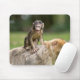 Mousepad con el mono del bebé en madres apoya. Tan lindo, enganchando un paseo y mirando abajo el mundo.