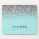 Alfombrilla De Ratón Monogram Teal Blue Silver Glam Glitter Name
