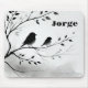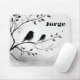 Alfombrilla De Ratón Monograma Aves simples blancas y negras en árboles
