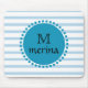 Alfombrilla De Ratón Monograma azul Verde azulado dorado a rayas