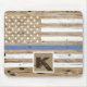 Una alfombrilla de ratón única pintada con la bandera estadounidense con una línea azul fina sobre un estilo de madera falsa rústica. Agrega un monograma. Envíame un mensaje si necesitas ayuda o tienes alguna solicitud especial.