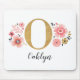 Una bonita y femenina almohadilla de ratón floral rosa monogramada, con flores rosadas y una letra de monograma de oro falsa O. Personalice la almohadilla del ratón añadiendo su nombre debajo del monograma. Hace un regalo divertido para un amigo o para una dama de honor. Diseñado para ti por Blackberry Boulevard.