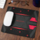 Alfombrilla De Ratón Monograma de juego geométrico plateado, negro y ro