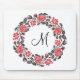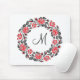 Alfombrilla De Ratón Monograma del círculo de las rosas rojas cruzadas