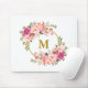 Acuarela Floral rosa Wreath Gold Monograma para ratón