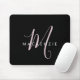 Alfombrilla De Ratón Monograma elegante de escritura rosa Rubor negro m