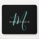 Alfombrilla De Ratón Monograma elegante de escritura Verde azulada negr