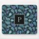 Elegante almohadilla de ratón monograma de patrón Paisley azul.