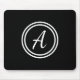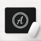 Almohadilla del ratón con fondo negro y monograma personalizado blanco primero inicial.