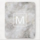 Esta almohadilla del ratón presenta un diseño moderno de mármol gris con un monograma blanco en un marco cuadrado.