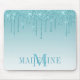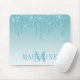 Moderno y elegante modas de moda y moda Aqua Blue Purpurina Mouse Pad personalizado con su Monograma Inicial y Nombre. Purpurina con chispas.