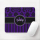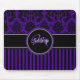 Alfombrilla De Ratón Monograma Morado Black Stripe Damask Mousepad