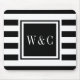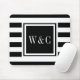 Elegante alfombrilla de ratón con monograma de iniciales personalizadas con un patrón de franjas negras y blancas con tus iniciales. Diseñado por Thisisnotme©