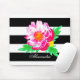 Nombre personalizado Mousepad con color de agua rosada sobre rayas blancas y negras. Realmente notable y lindo.