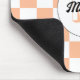 Almohadilla de ratón monograma retro geométrico de melocotón blanco. Cuadrados de cuadros geométricos regalo para ella. Patrón cuadrado geométrico retro de Guay. Chequero moderno blanco de durazno de tejas vintage. Personaliza con tu personalizado inicial y nombre.