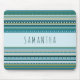 Alfombrilla De Ratón Monograma Tríbal Verde azulado Bandas Azules Patró