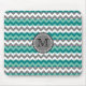 Alfombrilla De Ratón Monograma Zigzag de Chevron gris y turquesa #2
