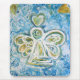 El cuadro es de un ángel blanco y dorado con acentos verdes rodeado de un cielo azul giratorio y corazones dorados. Los ángeles tienen un corazón blanco en lugar de un halo sobre la cabeza del ángel.