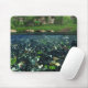 Escena submarina dividida con un valle verde por encima y las profundidades frías de un río montañoso rocoso por debajo. Los rayos solares bailan a través del agua y los bancos de peces plateados nadan entre las piedras y las malezas del lecho del río.