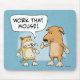 Aquí está un mousepad divertido que ofrece un gato y un perro lindos del dibujo animado con decir del gato: "Trabaje ese ratón!" Del creador de capitán webcomic popular Scratchy. ©2015 tirada Ingwersen