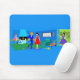 ¡Este Mousepad, Fiesta de cócteles de la Palm Springs Atómico, es una sofisticación kitsch en su más fabulosa! El estilo de los años 60, de diseño minimalista, cuenta con una chimenea de piedra moderna de mediados de siglo, a la sombra del azul, que se coordina perfectamente con el cobalto luminoso del resto de la sala de estar. Se puede ver una vista espectacular del patio tropical a través de las puertas correderas de cristal. La sala está decorada en lo más alto de la era espacial, con obras de arte moderno, paredes de cono, una mesita naranja de dos niveles y una alfombra de rayas verde oliva. Los glamorosos hombres y mujeres están bebiendo sus naranjas martinis. El hombre vestido con traje azul brillante y corbata de arco anima las cosas sacando la sombra de la fibra de vidrio de la lámpara y poniéndola en la cabeza para entretenerse con los demás clientes. ¡Ahora, es un fiesta!
