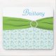 Este la aguamarina bonita azul y el mousepad floral de la verde lima tiene una falsa broche a juego de la cinta y del cristal. Modifiqúela para requisitos particulares con el su propio nombre, el monograma, o el otro texto.