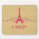 Elegante y moda Mousepad florido francés con un falso fondo de madera y un diseño de la Torre Eiffel en magenta adornado con cascadas de elegantes remolinos. Este diseño elegante y elegante es fácil de personalizar con el texto personalizado de su elección. Haga clic en "Personalizar" para encontrar más opciones de personalización.