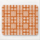 Un Mousepad muy elegante, con un patrón de motivos tradicionales de tapiz galés en blanco sobre fondo rojo ladrillo.