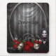 Mousepad/mousemat atmosféricos personalizados magníficamente góticos de la fantasía con un pequeño chica lindo y espeluznante del gótico que se coloca delante de un marco gótico de plata elegante hermoso con los cráneos, los rosas y las telarañas adornándolo. Personalice con su propio texto. Un regalo fresco, de moda y elegante hermoso para las mujeres y los chicas del gótico. ¡Un gran regalo para los adolescentes! De diseños magníficamente góticos.