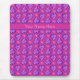 Un Mousepad muy bonito y femenino para personalizar, en un patrón de corazones y flores, en tonos magenta, rosa, azul y violeta.