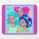 Mujeres groovy con almohadilla de ratón de flores. ¡La almohadilla de ratón Groovy para las mujeres seguramente alegrará tu día y a cualquiera a tu alrededor! Chicas icónicos de flores le dan un ambiente hippie con flores en el pelo. Mujeres africanas negras con colores vibrantes de azul, rosa, agua, púrpura y amarillo.
